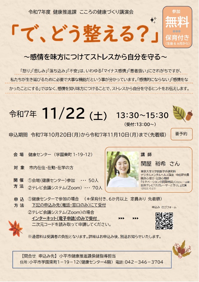「怒り」「悲しみ」「落ち込み」「不安」は、いわゆる「マイナス感情」「悪者扱い」にされがちですが、私たちが生き延びるために必要で大事な機能だという事が分かっています。「感情的にならない」「感情をなかったことにする」ではなく、感情を知り味方につけることで、ストレスから自分を守るヒントをお伝えします。