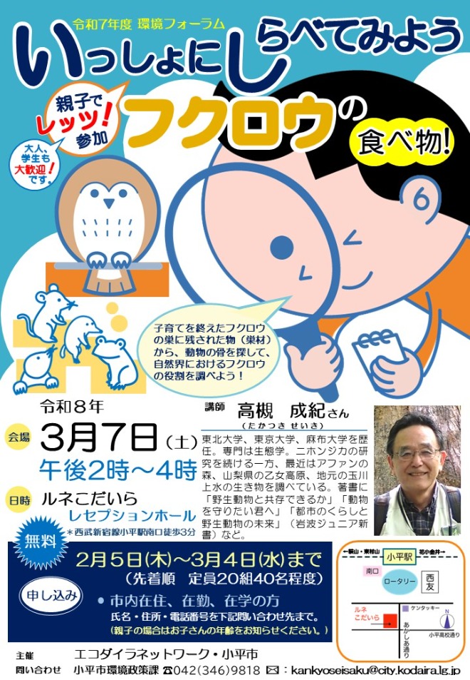 まだまだ募集中!【環境フォーラム】いっしょにしらべてみよう フクロウの食べ物