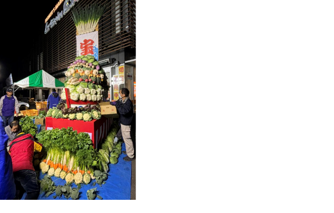 設計図はなく、野菜組合の方が、組合長の指揮で前夜に3時間以上かけて20人以上で組み上げます。