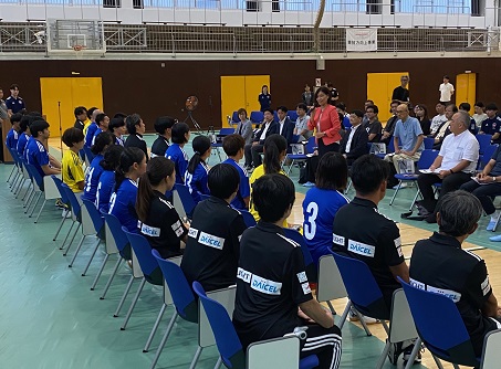 日本ブラインドサッカー協会によるIBSA世界選手権2025日本代表壮行会が三菱電機ビルソリューションズ株式会社の教育センター体育館で開催されました。今秋、ブラインドサッカー女子日本代表及びロービジョンフットサル日本代表の2つのチームが世界選手権に出場します。小平市を拠点としたチームが世界選手権に出場されることは喜ばしい限りであり、市といたしましても、選手のみなさまのご活躍を応援してまいります。