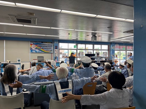 市民交通安全教室が、小川町にある新東京自動車教習所で開催されました。今回の交通安全教室では、高齢の方を対象とした交通安全漫談ヨガ教室が開かれました。また、9月21日から30日までの10日間にわたって実施される「秋の全国交通安全運動」の出動式がありました。