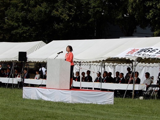 北多摩地区17市の消防団が一堂に会する消防大会が、ブリヂストン野球場グラウンドを会場として、実に18年ぶりに小平市で開催されました。当日は消防ポンプ車など約40台による市内パレード走行が行われ、消防団の雄姿を多くの市民の皆様にご覧いただくことができました。また、会場では東京消防庁音楽隊・カラーガーズ隊による華やかな演奏が披露されたほか、各市消防団による基本操法演技、さらに17市消防団による迫力ある一斉放水演技が行われ、大いに盛り上がった大会となりました。