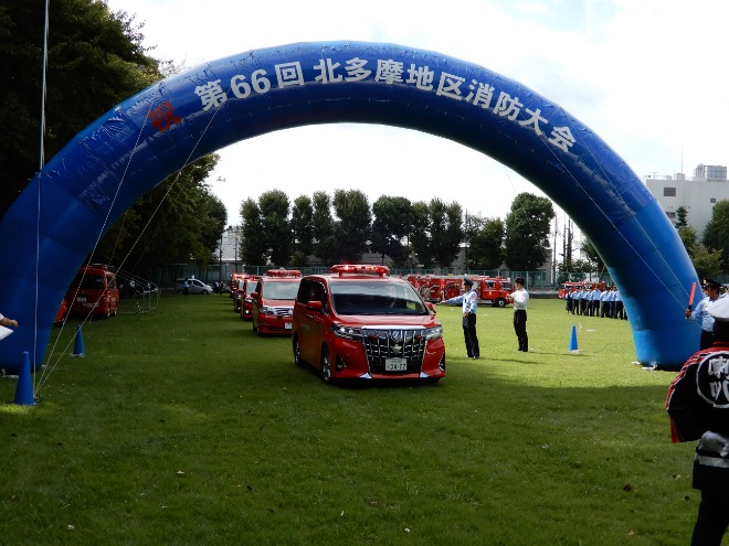 令和7年9月28日(日曜)、第66回北多摩地区消防大会が小平市で開催されました。北多摩地区17市の消防団が一堂に会し、盛大に大会が行われました。