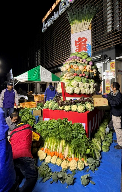 設計図はなく、野菜組合の方が、組合長の指揮で前夜に3時間以上かけて20人以上で組み上げます。