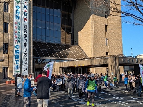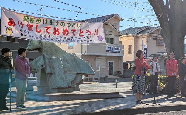 年始めの健康づくり事業として、第46回新春歩け歩けのつどいが開催されました。今年は市役所をスタートし、青梅街道、狭山・境緑道、小平ふるさと村などを通り、ゴールの市役所へ戻る、約8キロメートルの東回りコースでした。家族連れや友人同士での参加も多く、交流の場にもなっていました。