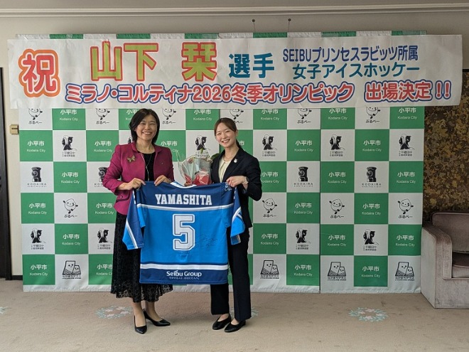2月6日から22日まで、イタリアで開催される冬季オリンピックのアイスホッケー女子日本代表に選出された市内在住の山下 栞(やました しおり)選手に、表敬訪問いただきました。初戦は、2月6日のフランス戦です。山下選手のご活躍を期待しております。