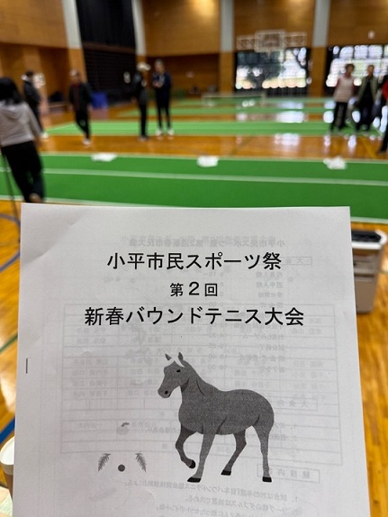 小平市バウンドテニス協会が企画・運営する第2回新春バウンドテニス大会が、市民総合体育館で開催され、お招きいただきました。バウンドテニスは、テニスとほぼ同様のルールで行われ、狭い場所でも手軽にできることから、生涯スポーツとして価値が高まり、老若男女を問わず多くの人が楽しんでいます。