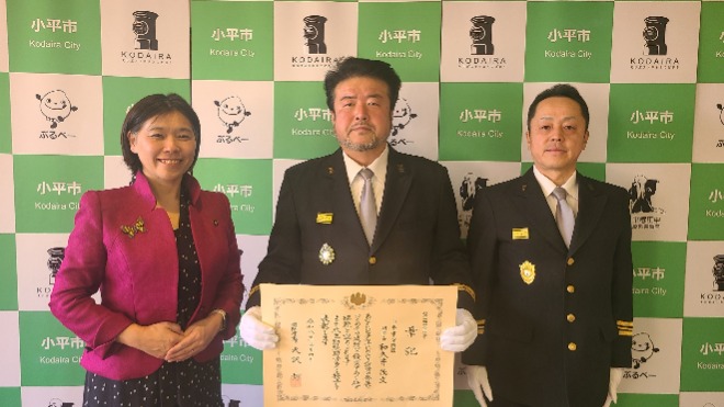 小平市消防団本部の和久井茂文副団長が、令和7年度消防功労者消防庁長官表彰の永年勤続功労章を受章しました。